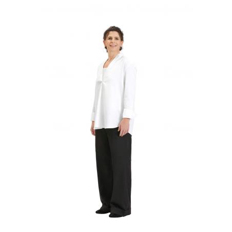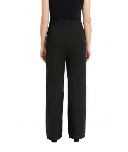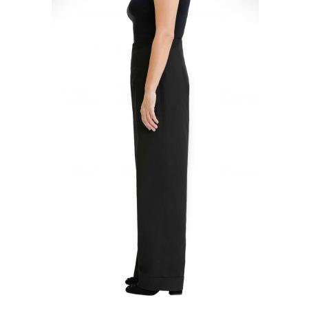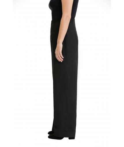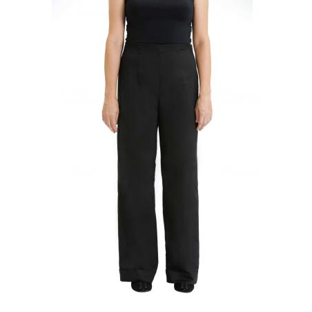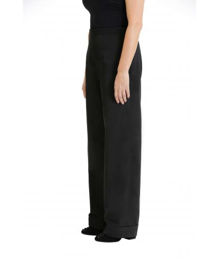 A full straight leg and a cuff at the bottom give these trousers an elegant look. Featuring fitted flat front and a zip at the side. Recommended to wear with Hip length blazer | Precious Raw Silk Collection JK19FW130 and Black turtleneck TP19FW230. For another look wear it Polka dot chiffon blouse TP19FW215.
