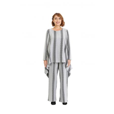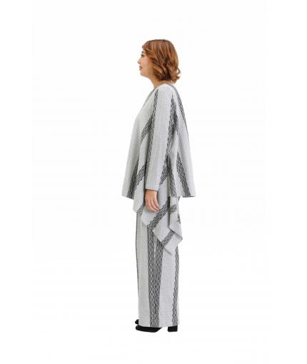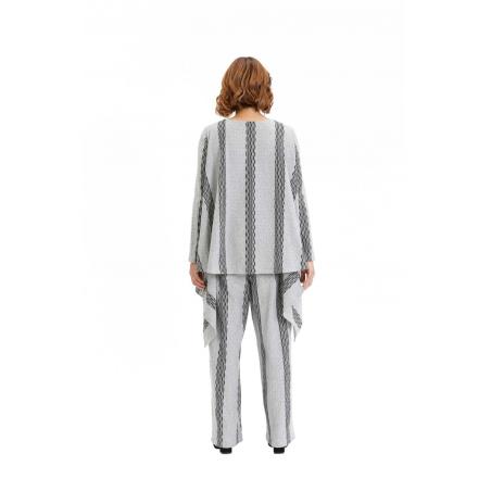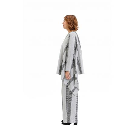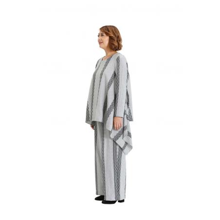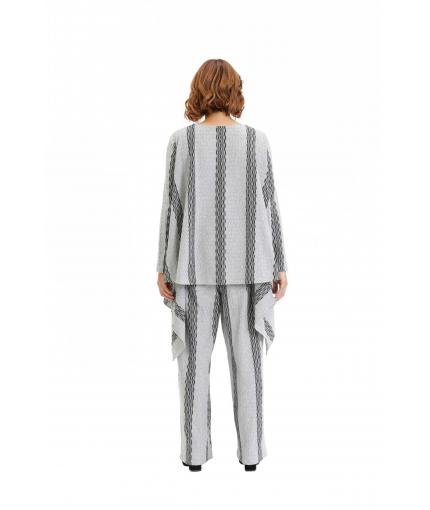 Comfortable drawstring pants with striped textured pattern. Easy fit, wider leg, two front side pockets and two patch pockets on the back. Recommended to wear with Grey and black asymmetric knit top TP19FW200 and for a change in look try Black asymmetric knit top TP19FW205.