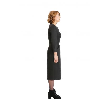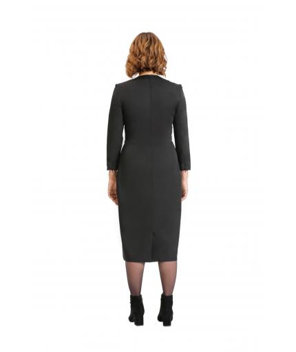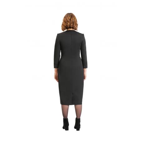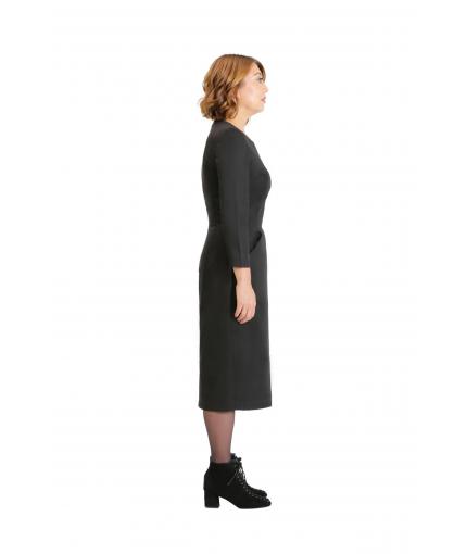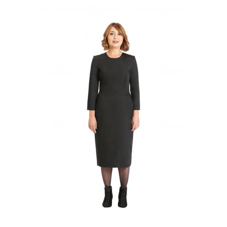 Vintage inspired, figure-enhancing, lined dress. Detailed front seams and fitted cut give this dress a feminine, chic look. Two front angled slit pockets, zippers on the end of the sleeves and a back zipper for better comfort.