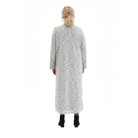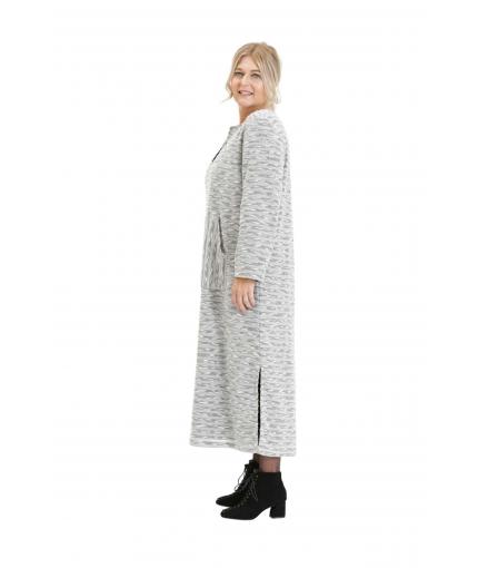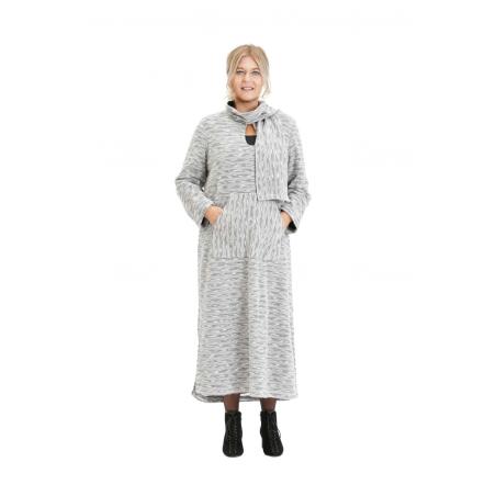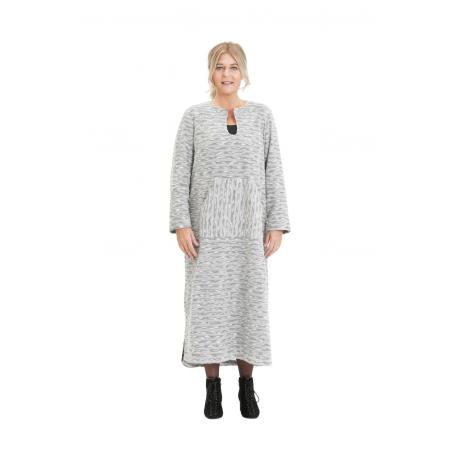 Flattering, oversized unstructured design for any shape. Long relaxed dress with a keyhole neckline, a pouch in the front to keep your hands warm and slits on the sides of the hem that make it easy to walk. Made with horizontal stripe sheer nub knit, layered underneath with 100% black cotton knit jersey for warmth. We love this teamed with the scarf AC19FW110 and a hat AC19FW100.
